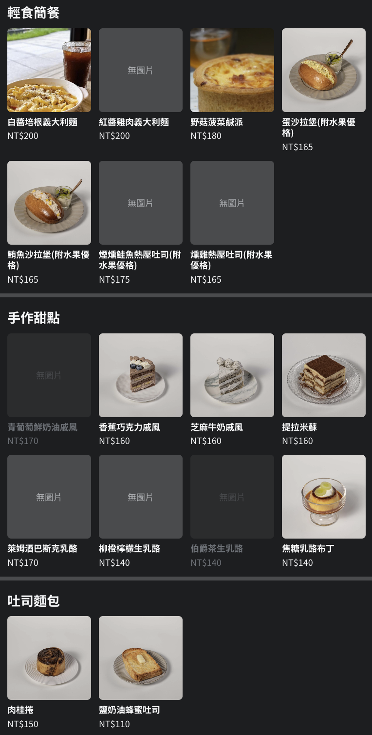 2GATHER藝起吧菜單品項不僅有常見的義式咖啡,也有手沖咖啡、茶飲、果汁、氣泡飲、牛乳系列等,非常多樣的品項能夠選擇。不僅如此,若還沒用餐則有義大利麵、蛋沙拉堡、熱壓吐司的輕食,想搭配甜點的話,許多人都會點戚風蛋糕或是吐司麵包,不得不說他們家的選擇真的超級多,好久沒看到這麼多選擇的咖啡廳了。