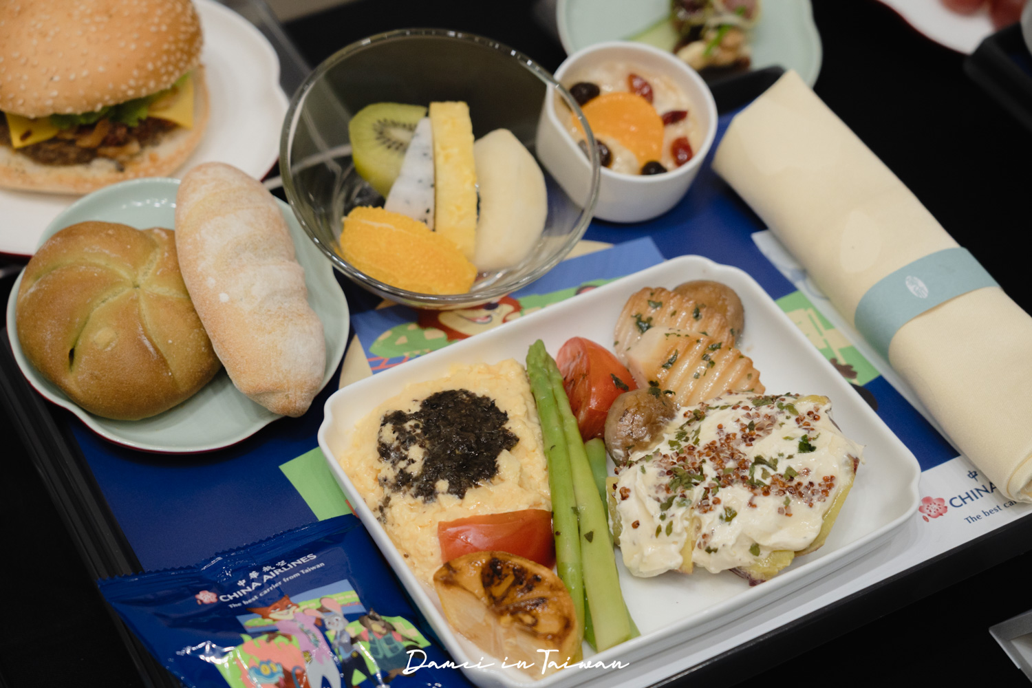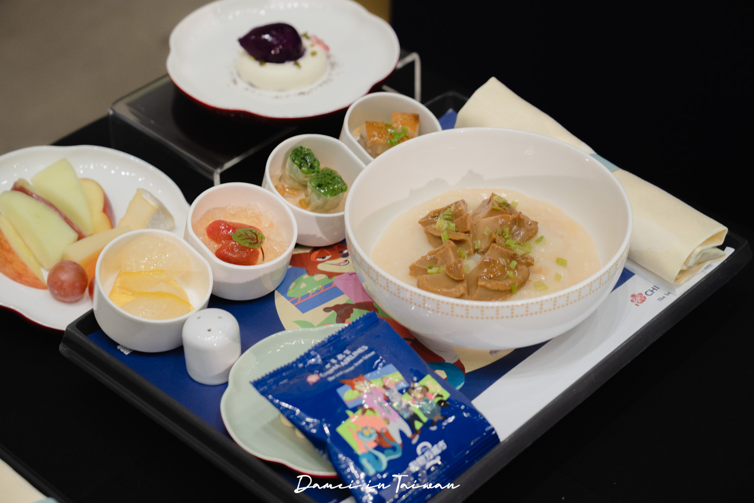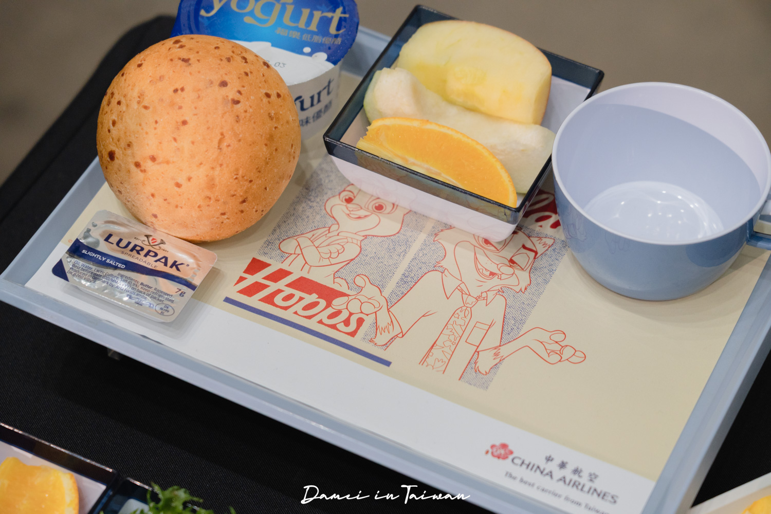 這次在機上餐飲盤墊紙、機上小點心以及紙杯都能看到主角們,華航還特別製作機上用品作為兒童限定玩具,贈送給小小旅客們,像是貼紙、彩繪機氣球等等。