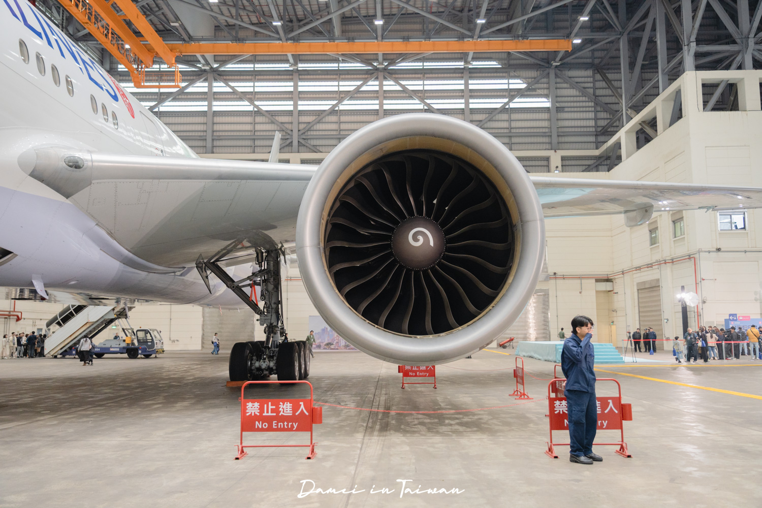 飛機的引擎真的是有夠大,看看人站在旁邊是不是有夠小。