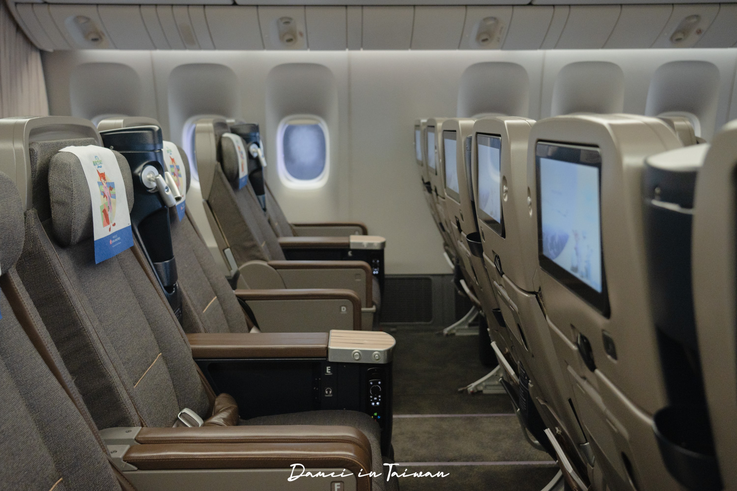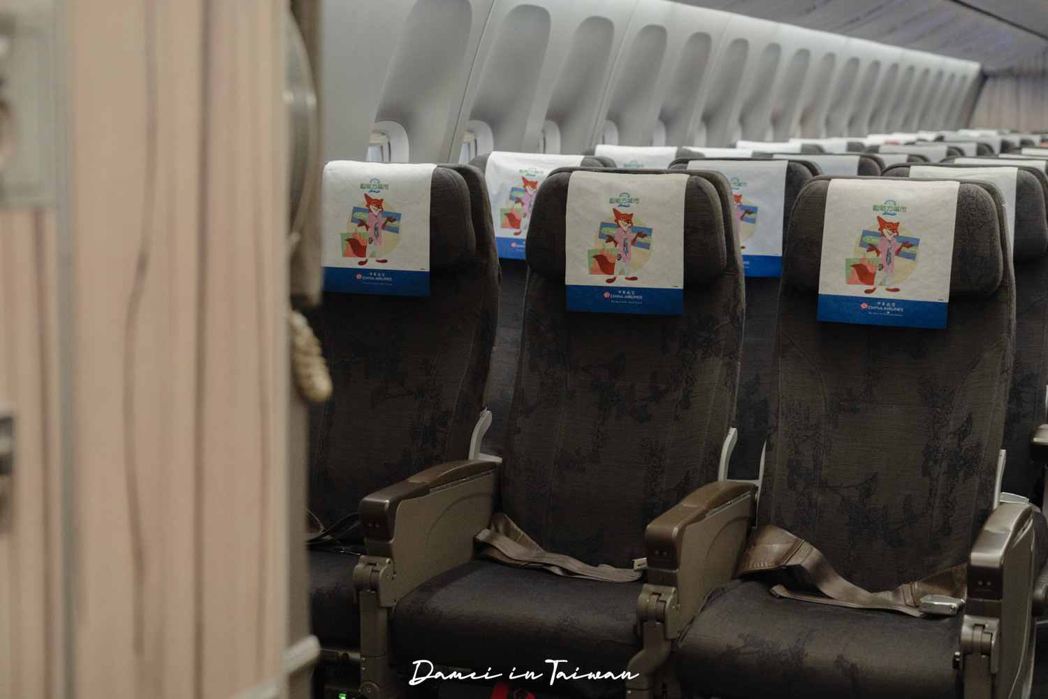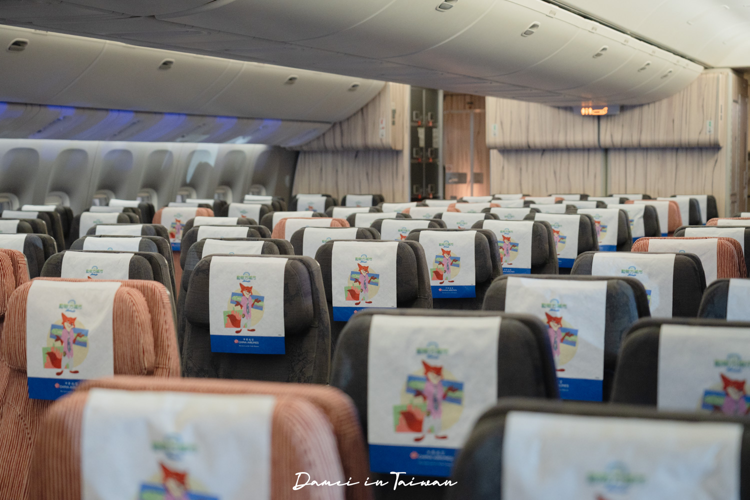 華航波音777-300ER動物方城市彩繪機共有三種艙等,分別為經濟艙、豪華經濟艙以及豪華商務艙,經濟艙的座椅頭墊紙還是胡尼克呢。