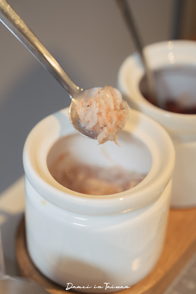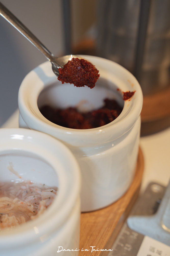 送上桌看到湯裡有韭菜以及湯頭的顏色,就已經讓我很期待!血腸湯飯不僅有血腸,搭配多種豬內臟,喜歡吃內臟的人會滿喜歡的,不太有腥味,覺得處理的很好。此外,湯頭本身味道滿足夠,稍微加點蝦醬就可以~台灣的血腸我覺得都還是少個味道,但Q彈有嚼勁也是很滿足了。整體來說,我們都給這碗湯滿高的評價,唯一可惜的是內臟都切得太小啦。