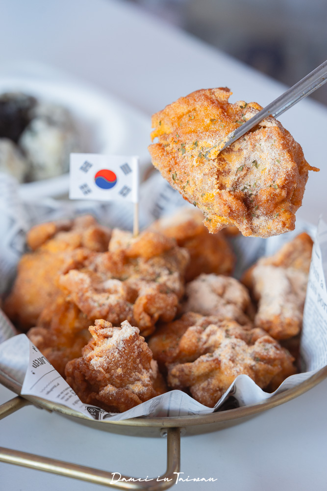 位在火車頭公園裡的歐吧噠韓餐酒 淡水店,這次重新裝潢後,門面變得非常活潑俏皮,門口可是鎮店之寶-炸雞歐巴、泡菜歐膩,經過的姊姊阿姨都忍不住跟他們合照,這也是韓式料理的兩大精髓。我可以說是歐吧噠韓餐酒的小粉絲,不定時就會想來吃一頓,他們家最知名的料理莫過於炸雞了,喜歡韓式炸雞的你,這篇文章要繼續看下去。